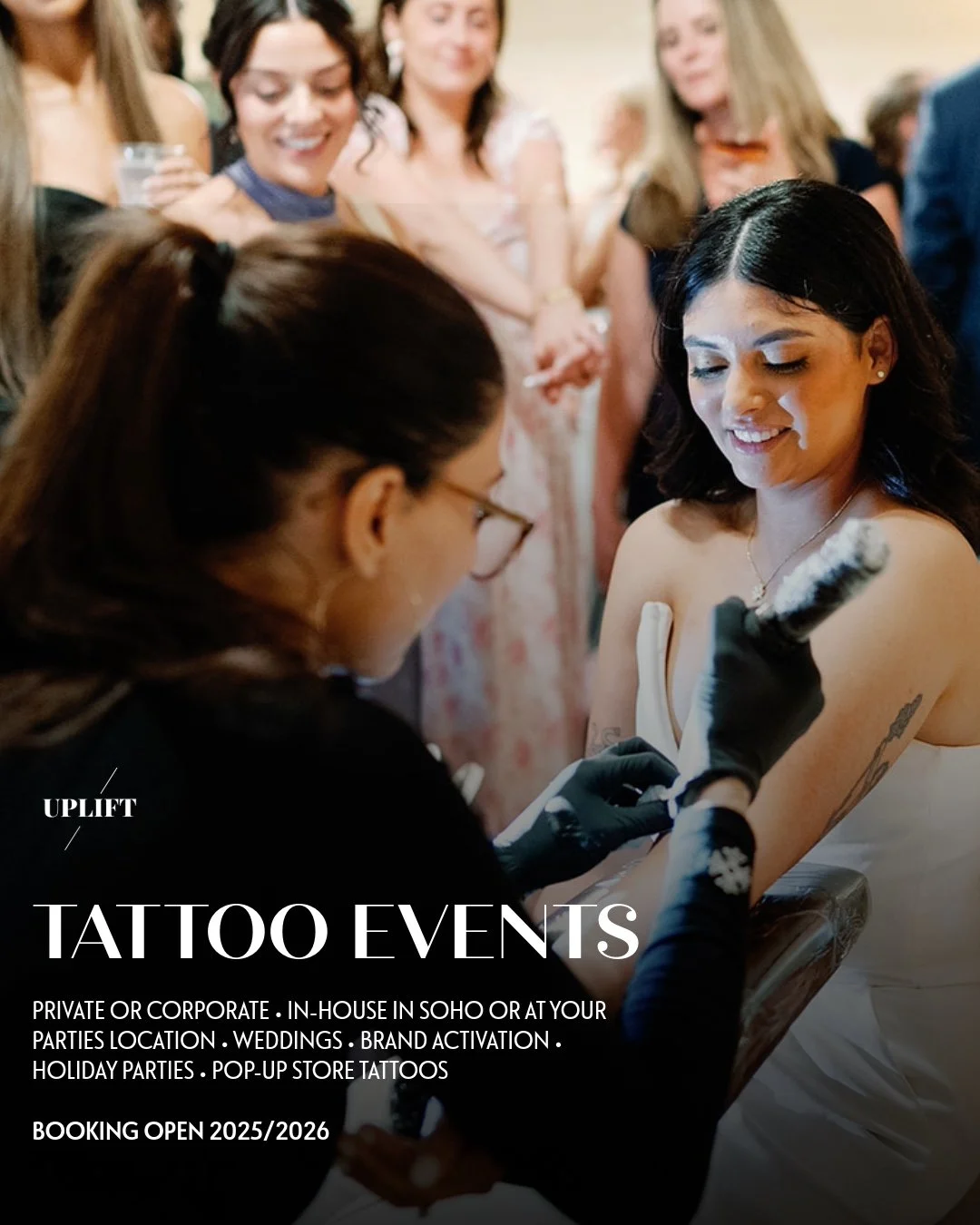 Looking for a way to make your event unforgettable? Invite UPLIFT Tattoo & Piercing to bring a unique, lasting experience to your celebration.
